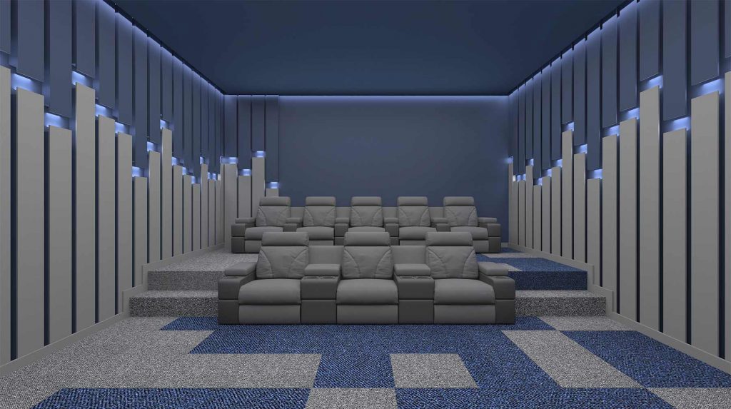 These designs use materials suitable for private cinema decor, which are transparent acoustic fabrics, which allow speakers and acoustic panels to be hidden behind the decor, making the sound source unclear in addition to the visual beauty, thus doubling the enjoyment of watching movies and series for the viewer.